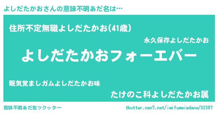 | ファンタジー風あだ名 | 『エターナルヨシダタカオー』 |