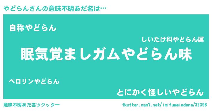 | ヒーロー風カッコイイあだ名 | 『慈愛の使者やどらん』『黄金騎士ヤド』 |