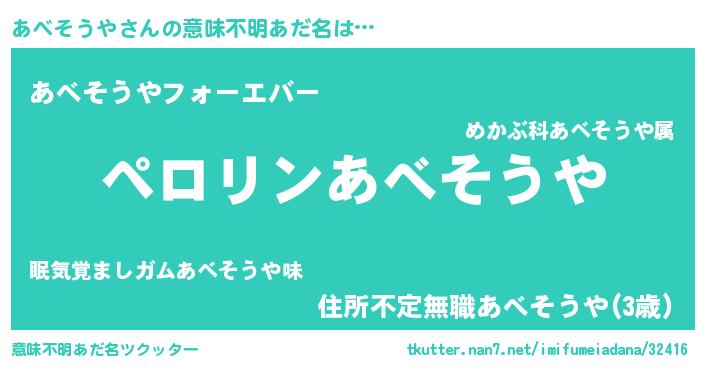 | 胡散臭い通販商品みたいなあだ名 | 『必ず成功する霊験あらたかなお札…その名も「あべそうや」』 |