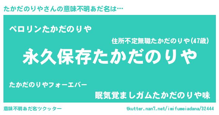 | 胡散臭い通販商品みたいなあだ名 | 『絶対に幸福をもたらす水素水…その名も「たかだのりや」』 |