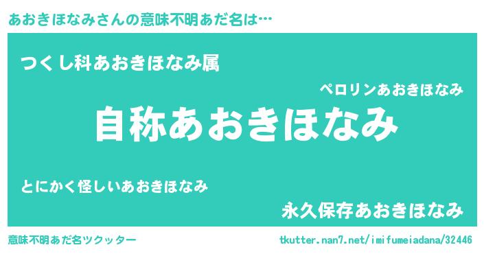 | 男性向けラノベタイトル風あだ名 | 『Re:あおきほなみから始める異世界生活』 |