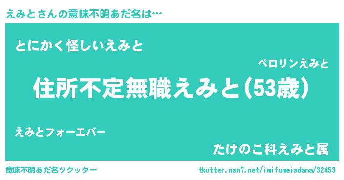 | 女子向けラノベタイトル風あだ名 | 『悪役えみとに転生したようですが、知った事ではありません』 |