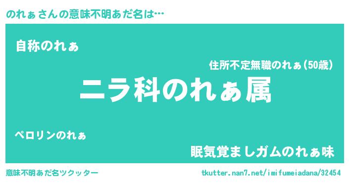 | 男性向けラノベタイトル風あだ名 | 『のれぁ~年齢イコール彼女いない歴の魔法使い~』 |