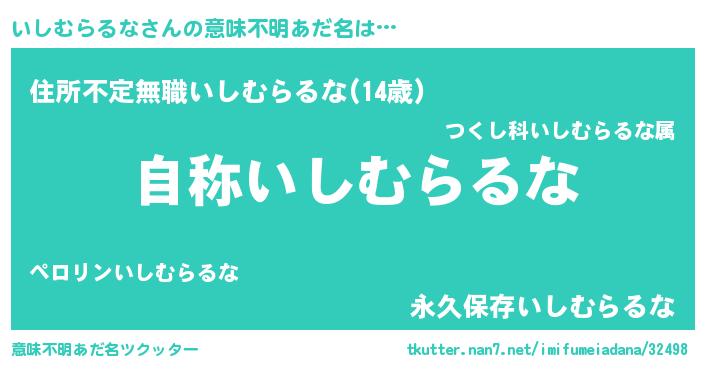 | ヘコむあだ名 | 『いしむらるな(小並感)』『いしっふぃ~』 |