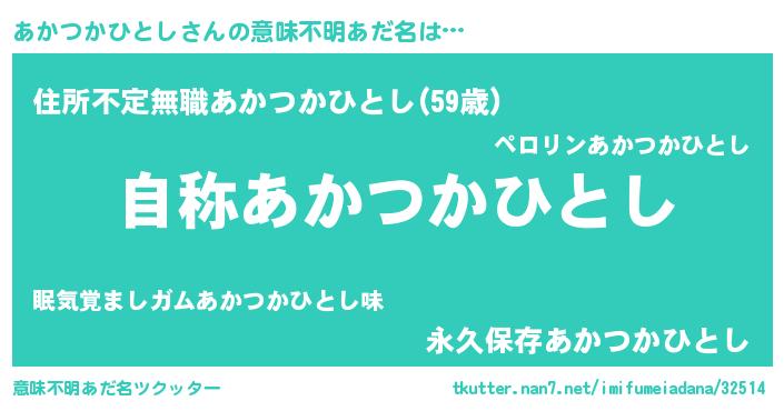 | ヘコむあだ名 | 『あかつかひとし(笑)』『あかふぇ~』 |
