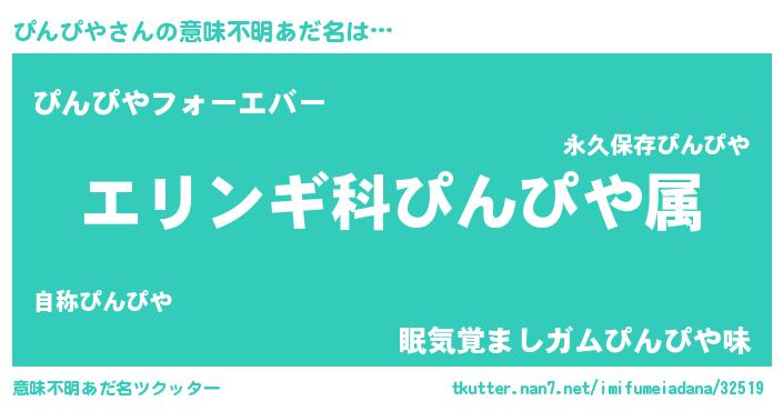 | 男性向けラノベタイトル風あだ名 | 『ピンピヤスレイヤー』 |