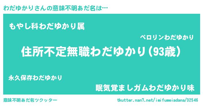 | 男性向けラノベタイトル風あだ名 | 『わだゆかりに滅ぼされるだけの簡単なお仕事です』 |