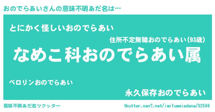 | 欧米人風あだ名 | 『トリンドルおのでらあい』 |