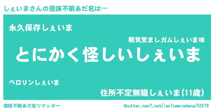 | 男性向けラノベタイトル風あだ名 | 『ダンジョンにしぇいまを求めるのは間違っているだろうか』 |