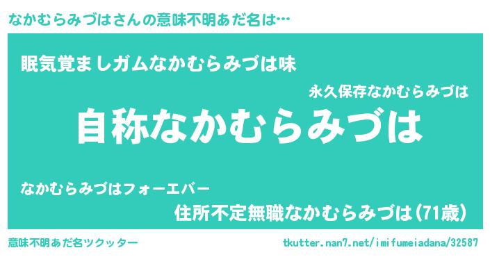 | 男性向けラノベタイトル風あだ名 | 『魔法科高校のなかむらみづは』 |