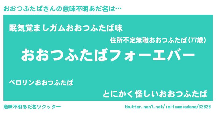 | ファンタジー風あだ名 | 『エターナルオオツフタバー』 |