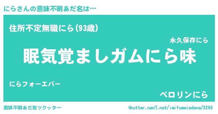 | ヘコむあだ名 | 『にらにー』『にら(小並感)』 |