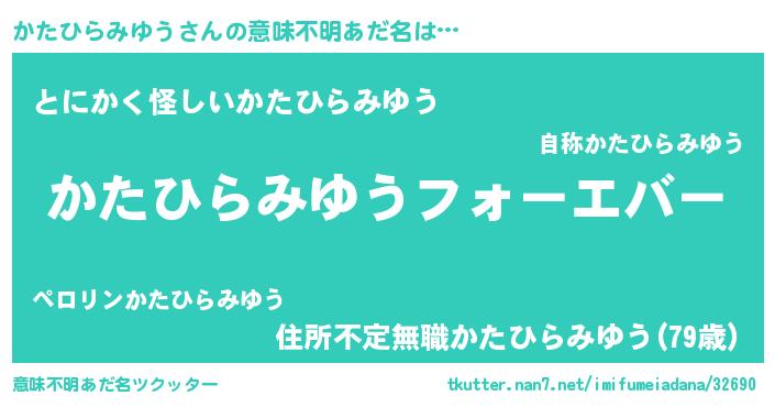 | 男性向けラノベタイトル風あだ名 | 『うちのかたひらみゆうが世界を掌握している!』 |