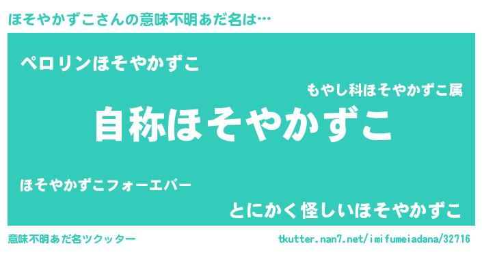 | ヒーロー風カッコイイあだ名 | 『ウルトラ戦士ホソヤカズコ』 |