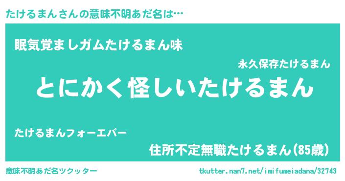 | ヘコむあだ名 | 『たけっちょ』『たけるまん(笑)』 |