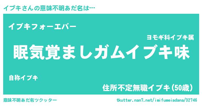 | ヘコむあだ名 | 『豆乳』『イブキ(苦笑)』『イブっ子』 |