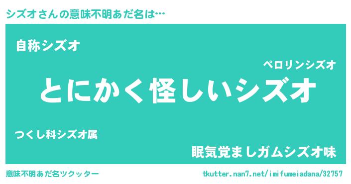 | ヒーロー風カッコイイあだ名 | 『天弓騎士シズ』『究極戦士シズオ』 |