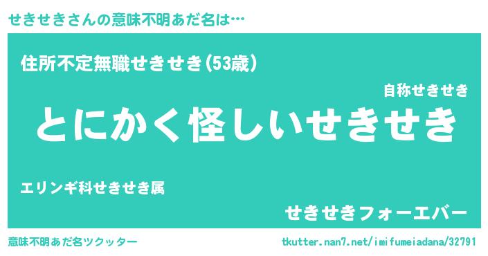 | 欧米人風あだ名 | 『アンジェラ・せきせき』 |