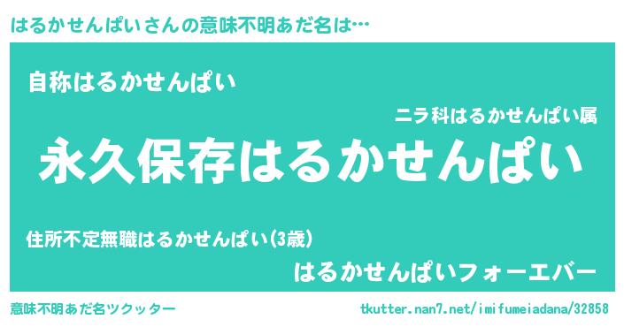 | 伝説のあだ名 | 『古より伝わる勇者はるかせんぱい』 |