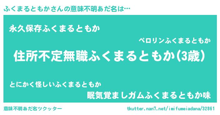 | ヘコむあだ名 | 『ふくまるともか(小並感)』『ふくにゅー』 |