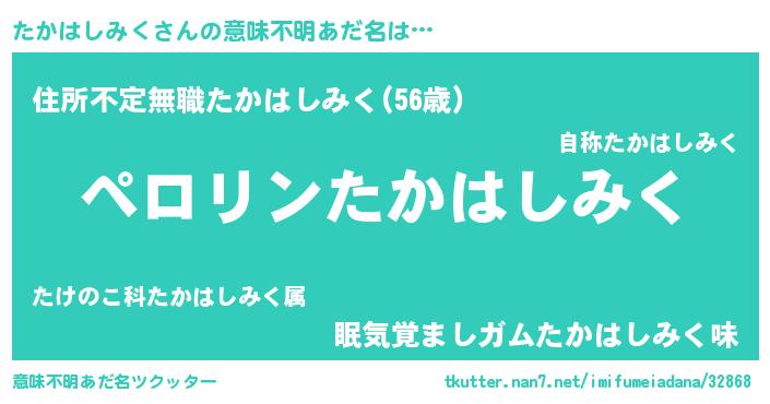 | 胡散臭い通販商品みたいなあだ名 | 『億万長者になれる霊験あらたかなお札…その名も「たかはしみく」』 |