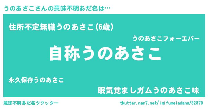 | ヒーロー風カッコイイあだ名 | 『究極戦士ウノアサコ』『仮面ウノダー』 |