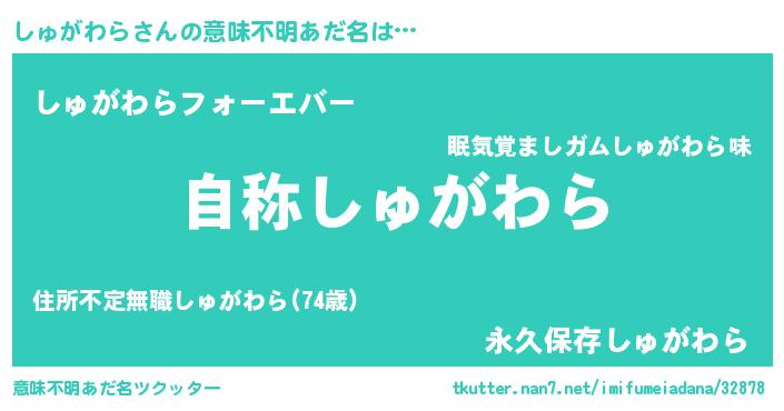 | 肩書あだ名 | 『しゅがわら閣下』『しゅがわら国家主席』 |