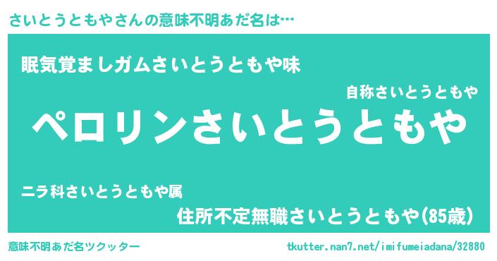 | 胡散臭い通販商品みたいなあだ名 | 『必ず成功する水晶球…その名も「さいとうともや」』 |