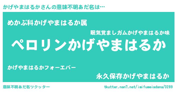 | ヘコむあだ名 | 『かげにゅー』『かげやまはるか(遠い目)』 |