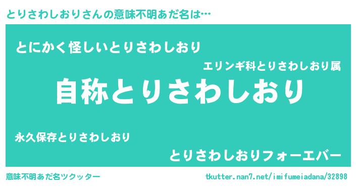 | 肩書あだ名 | 『とりさわしおり閣下』 |