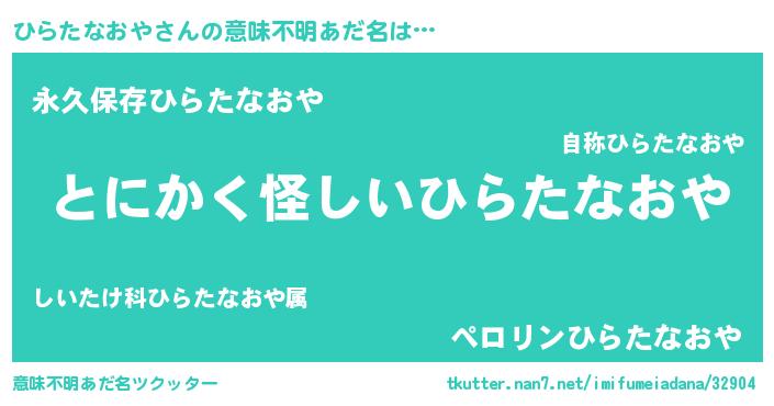 | ポケモン風あだ名 | 『ヒヒラタナオヤ』『ゼニヒラ』 |