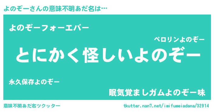 | 女子向けラノベタイトル風あだ名 | 『よのぞーは平凡を望む』 |