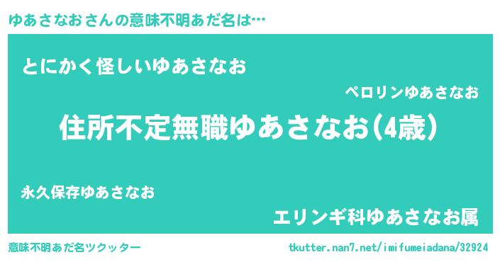 | 男性向けラノベタイトル風あだ名 | 『この素晴らしい世界にゆあさなおを!』 |
