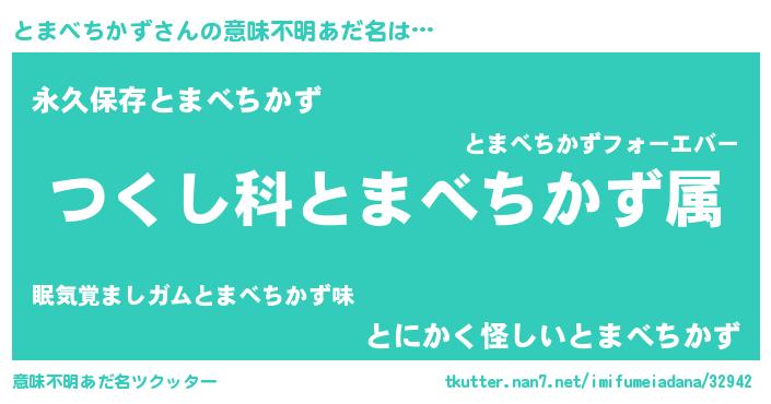 | 男性向けラノベタイトル風あだ名 | 『うちのとまべちかずが世界を掌握している!』 |