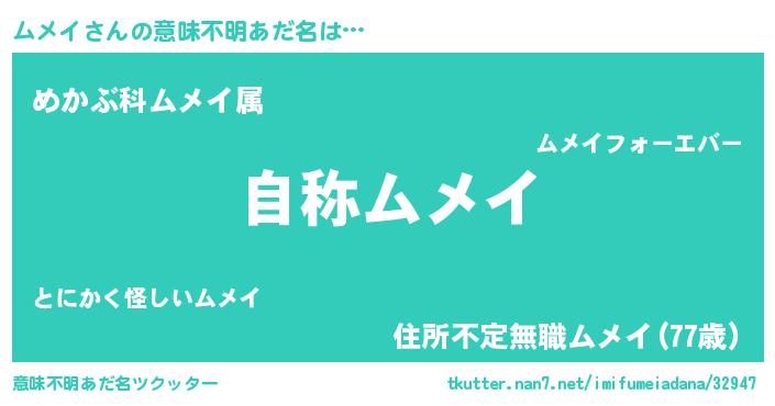 | ヒーロー風カッコイイあだ名 | 『サイバー戦士ムメイ』『仮面ムメダー』 |