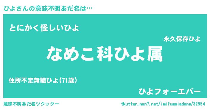| 男性向けラノベタイトル風あだ名 | 『転生したらひよだった件』 |
