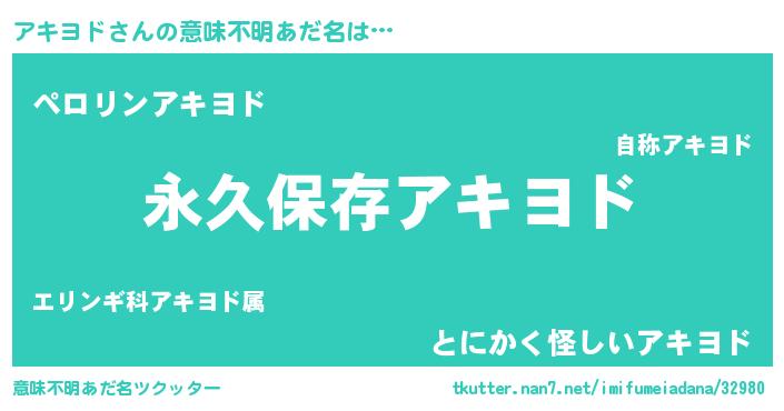 | ヒーロー風カッコイイあだ名 | 『ネオアキヨド』『スーパーアキヨド』 |