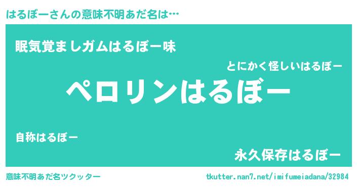 | 男性向けラノベタイトル風あだ名 | 『ハルボーアートオンライン』 |