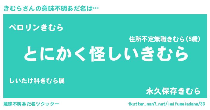 | 女子向けラノベタイトル風あだ名 | 『きむらは平凡を望む』 |