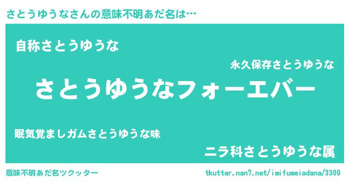 | ファンタジー風あだ名 | 『エターナルサトウユウナー』 |