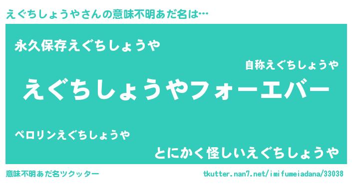 | 男性向けラノベタイトル風あだ名 | 『えぐちしょうやに滅ぼされるだけの簡単なお仕事です』 |