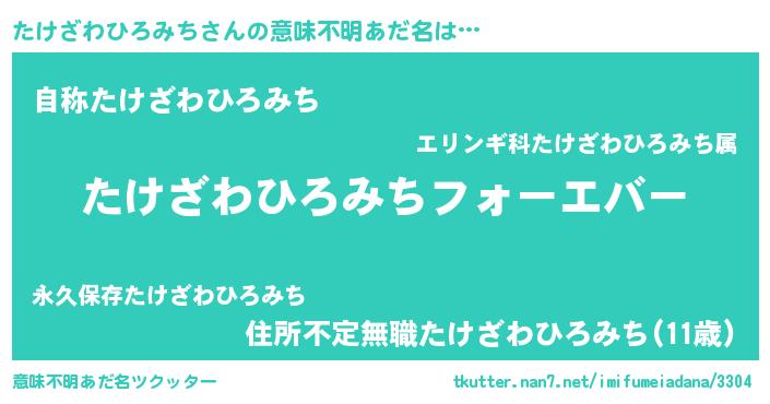 | 男性向けラノベタイトル風あだ名 | 『冴えないたけざわひろみちの育てかた』 |
