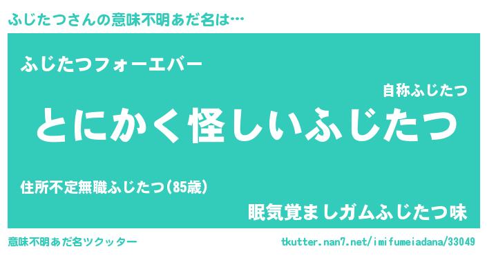 | 胡散臭い通販商品みたいなあだ名 | 『信頼と実績のサプリメント…その名も「ふじたつ」』 |