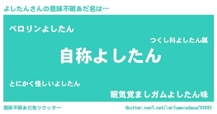 | 男性向けラノベタイトル風あだ名 | 『Re:よしたんから始める異世界生活』 |