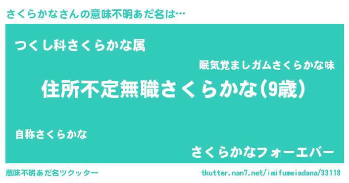 | 女子向けラノベタイトル風あだ名 | 『さくらかなが死なない童話 林檎のさくらかなの診療簿』 |