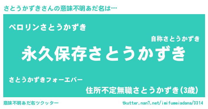 | 胡散臭い通販商品みたいなあだ名 | 『絶対に幸福をもたらす水素水…その名も「さとうかずき」』 |