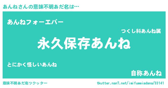 | 男性向けラノベタイトル風あだ名 | 『あんねという概念が存在しない退屈な世界 』 |
