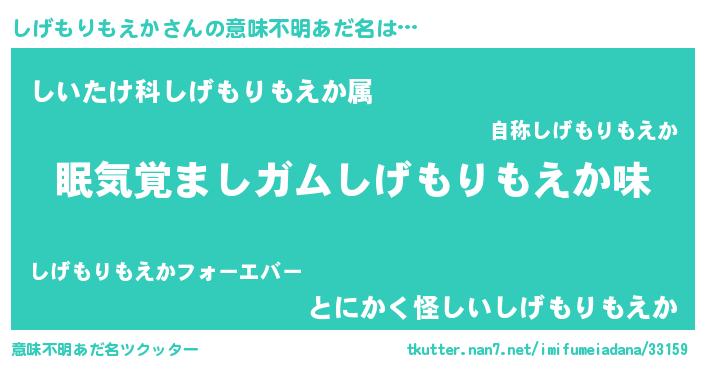 | 女子向けラノベタイトル風あだ名 | 『しげもりもえか恋絵巻』 |