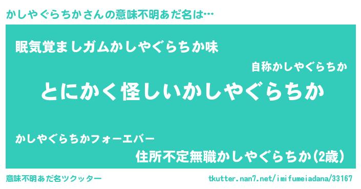 | 欧米人風あだ名 | 『ウサインかしやぐらちか』 |