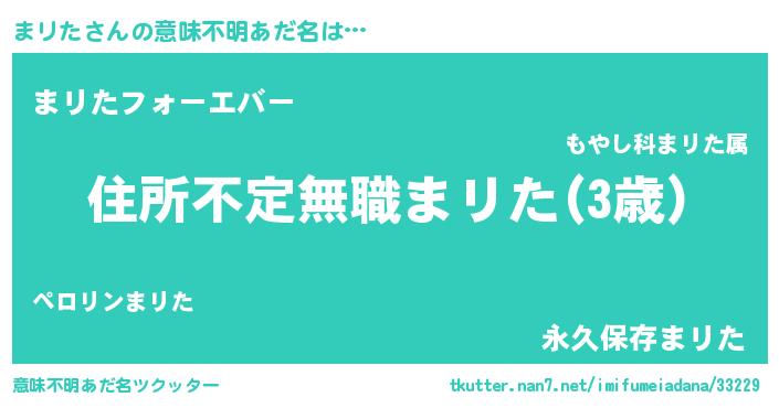 | ヘコむあだ名 | 『なまこ酢』『まリた(笑)』『まリを』 |